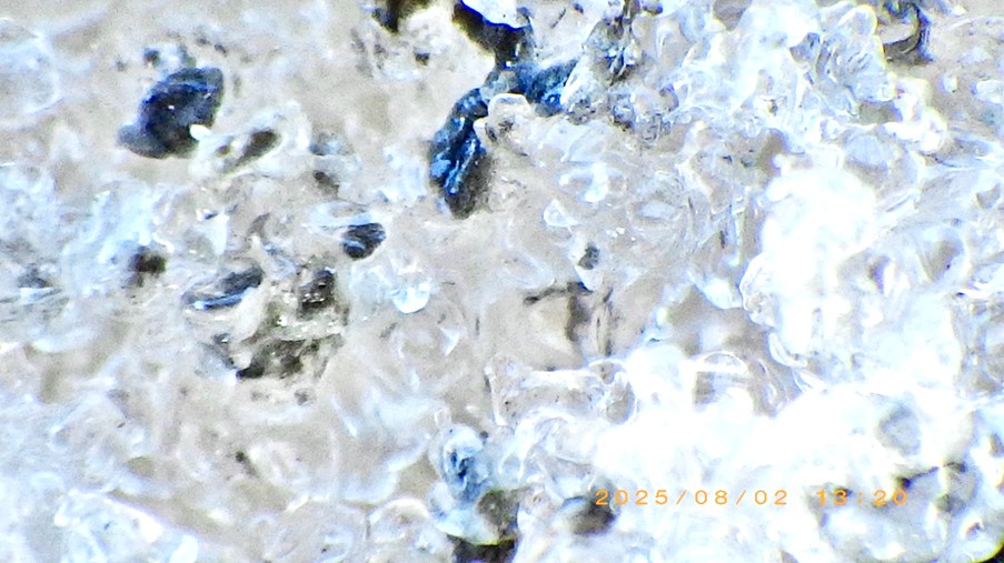 さらに、氷河表面の氷が一度融けて再凍結し、滑らかな氷ではなくザクザクとした大きな粒状の塊になったものを風化氷と呼びます。風化氷は表面が粗く不均一で、しばしば鉱物や有機物を含むため、太陽光の反射率(アルベド)を低下させます。今回は、風化氷や鉱物がアルベドにどの程度影響し、それが地球温暖化とどのように関わっているのかについても調べています。