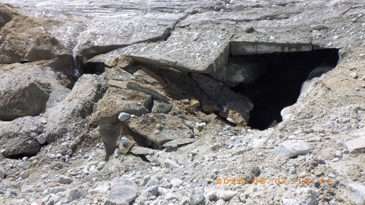 「アイスブリッジ」(氷の橋)と呼ばれる、モレーンから氷河へと渡る地点です。ここが氷河での調査のスタート地点となります。いくつかのアイスブリッジは壊れかけていました…^^;