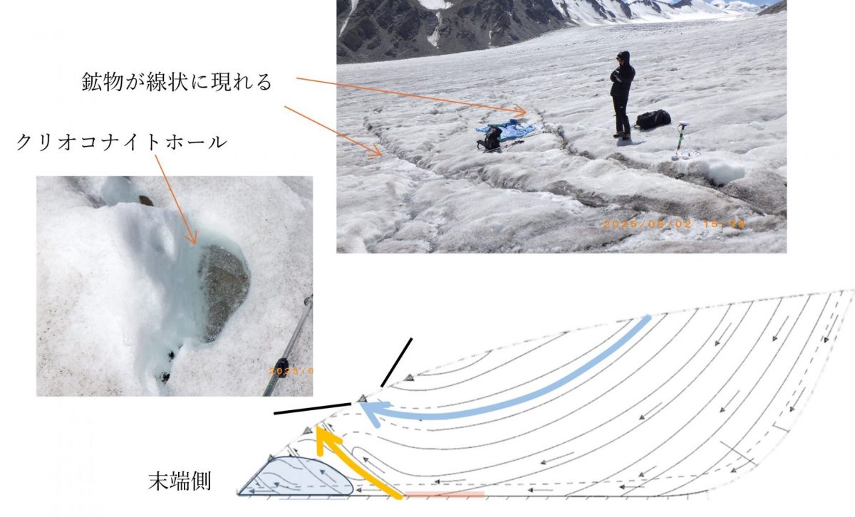 今回の調査では、ポターニン氷河において鉱物がどのように氷河に取り込まれて分布し、微生物や藻類の活動に影響を与えているかを明らかにすることを目的としています。鉱物の大きさによって生物活動が異なり、生物が粘着物質を生産するため鉱物の留まり方が違うのではないか、と仮定しているのです。また、窒素栄養の起源を解明し、藻類の繁殖との関係や氷河上での窒素分布を明らかにすることで、窒素循環のメカニズムを総合的に理解することも目指しています。
